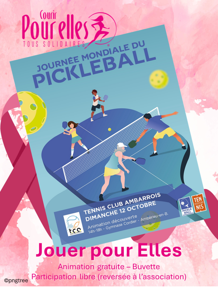 En plein cœur du mois d’Octobre Rose, cet évènement s’inscrira lui aussi dans la lutte contre le cancer du sein. Pour cela, le TC Ambarrois s’est rapproché de l’association Courir pour elles, qui lie la pratique sportive et la lutte contre les cancers féminins. Bien que l’entrée soit gratuite, une cagnotte sera mise à disposition en faveur de l’association, qui récupérera également tous les bénéfices de la buvette à l’issue de cette journée découverte du pickleball.